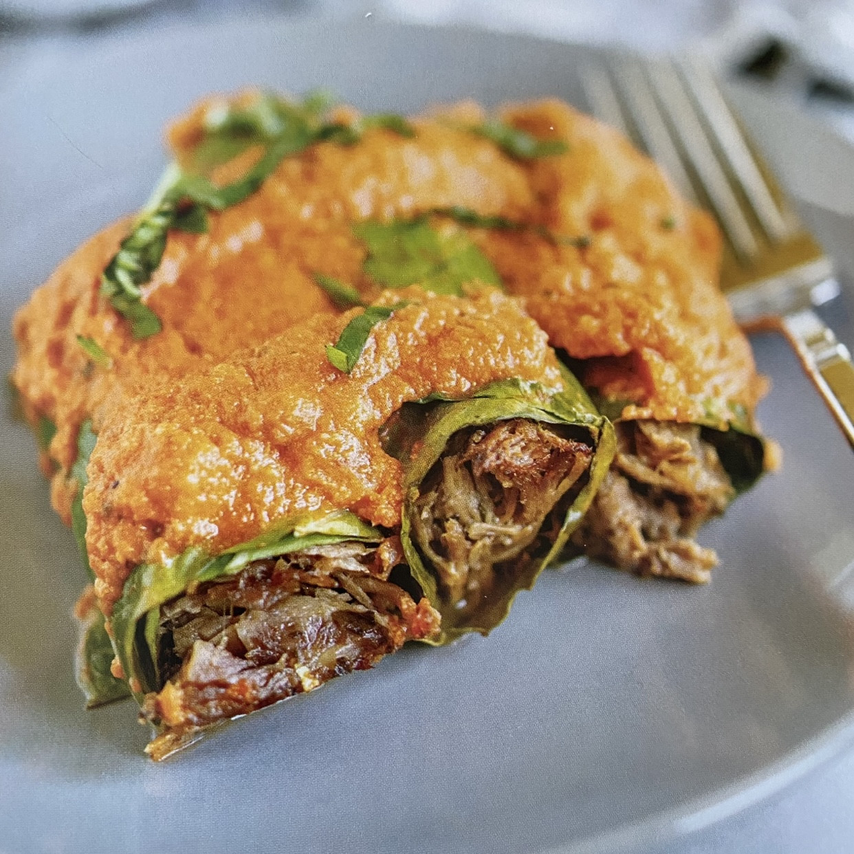 Ingredients: local pasture raised grass fed beef roast, collard greens, parmesan, heavy cream, tomatoes, vodka, basil and spices.