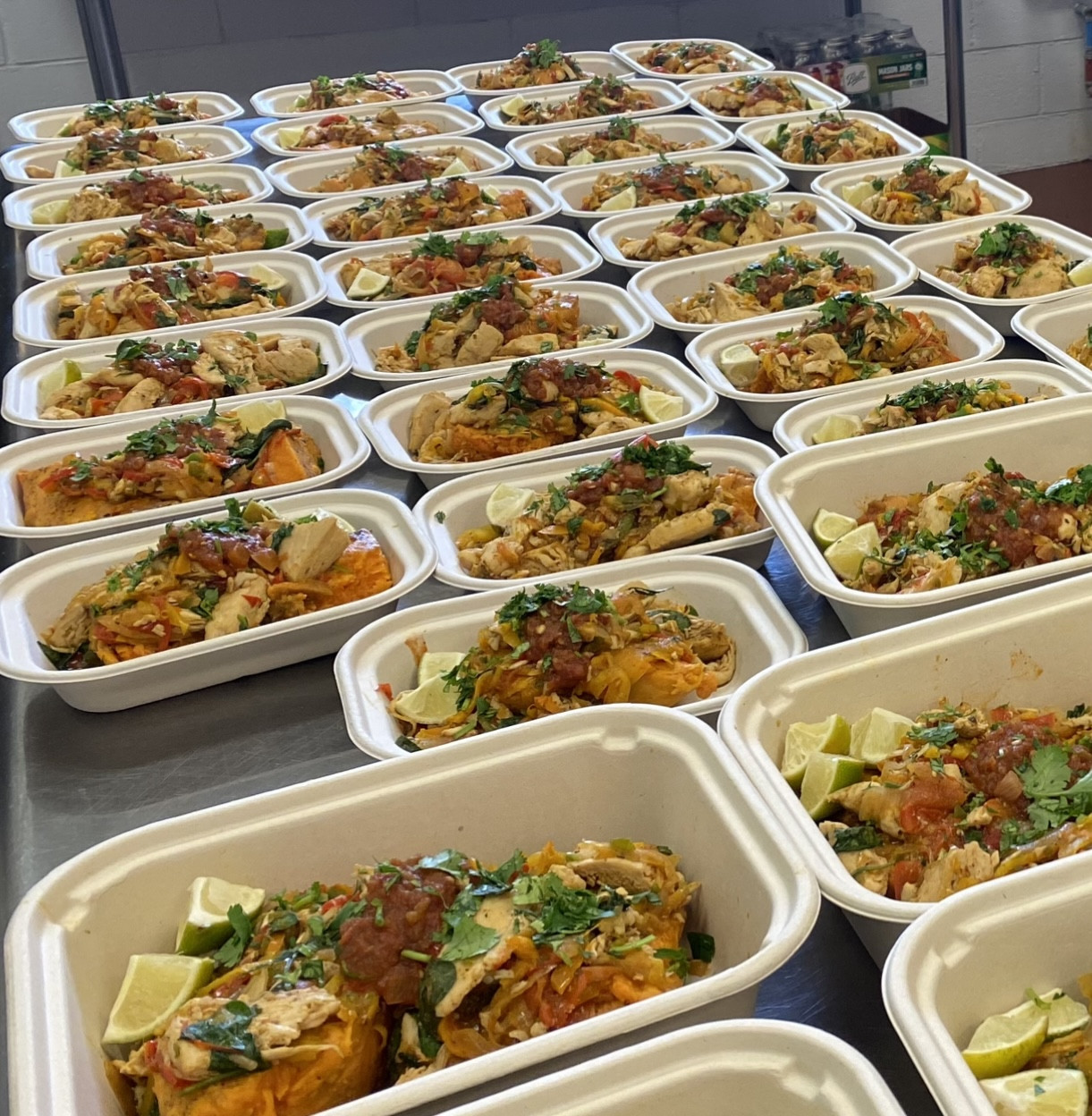 Ingredients: local pasture raised chicken, sweet potatoes, Lobo's Salsa, bell pepper, spinach, onion, jalapeño, avocado, lime and spices.
